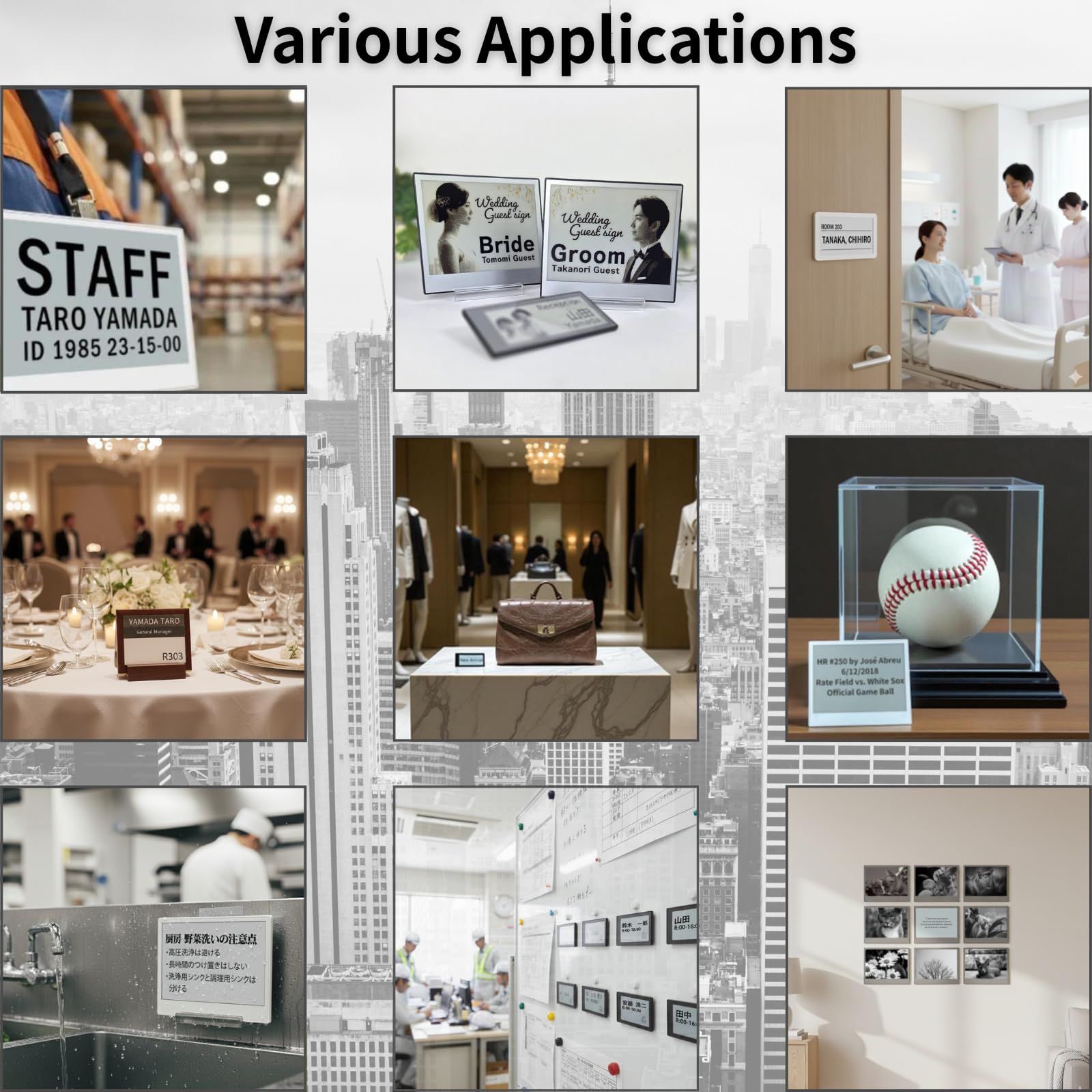 Displays black and white for clear visibility of names, notices, schedules, and identification in office, retail, and workplace settings. Quickly updates in about 3 seconds.